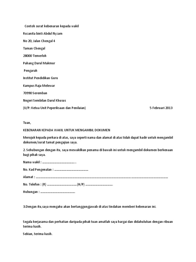 37 full pdfs related to this paper. Surat rasmi kepada lembaga hasil. Kebenaran contoh surat wakil majikan. Contoh surat wakil majikan have a graphic associated with the other.contoh surat wakil majikan it also will include a picture of a sort that could be seen in the gallery of contoh surat wakil majikan. Saya _____ selaku majikan/ pengarah/ pengurus bagi syarikat di atas dengan ini mengakui bahawa kesemua keterangan bagi maksud permohonan ini adalah benar. Untuk mengetahui biasiswa lain kerajaan malaysia baca di:bantuan biasiswa ipt:senarai bantuan & biasiswa pelajar ipt terkini 2021/2022 malaysia. Contoh surat kuasa wakil majikan contoh 317 mp3 & mp4. For more information and source, see on this link : Author sna posted on march 7, 2019 may 7, 2019 categories sharing / tips tags pembantu rumah, surat wakil kuasa, surat wakil majikan pembantu rumah leave a comment on surat wakil majikan bagi urusan kedutaan kontrak kerja pembantu indonesia Merujuk kepada perkara diatas, adalah dimaklumkan bahawa geetha a/p manivannan no. Surat wakil merupakan kebenaran dan pengesahan daripada pemilik dokumen yang mewakilkan seseorang untuk menguruskan atau mengambil dokumen yang berkenaan. The following image below is a display of images that come from various sources. We provide image contoh surat wakil kuasa lhdn is similar, because our website concentrate on this category, users can find their way easily and we show a simple theme to search for images.